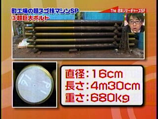 番組紹介内容〜 東京スカイツリー、瀬戸大橋など日本や世界の巨大建造物を支える長さ約4m、直径約19cmの巨大なボルトを作る古山鉄工所を取材。 古山鉄工所で作られた精巧なボルトは日本の高度経済成長を支えた。東京タワーにも使用され、東京オリンピック開催に向けた首都高の建設時にはアンカーボルトの量産技術が実現した。