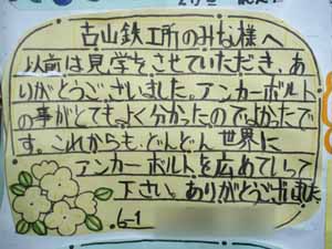 | ■2015年5月・・・・富山県八尾中学校が工場見学に来る。 |
